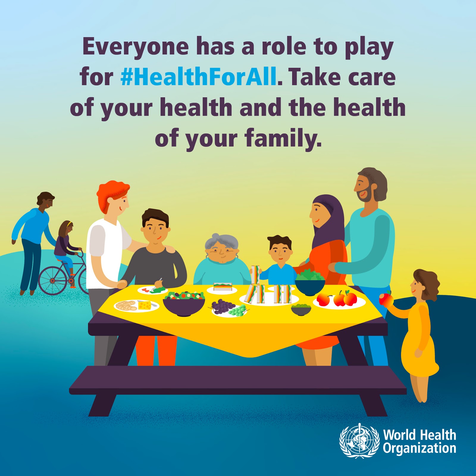 The tagline for World Health Day is: Health for all – everyone, everywhere.